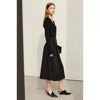 Trendy Office Lady A-line Loose Skirt with Geometric Buckle Belt